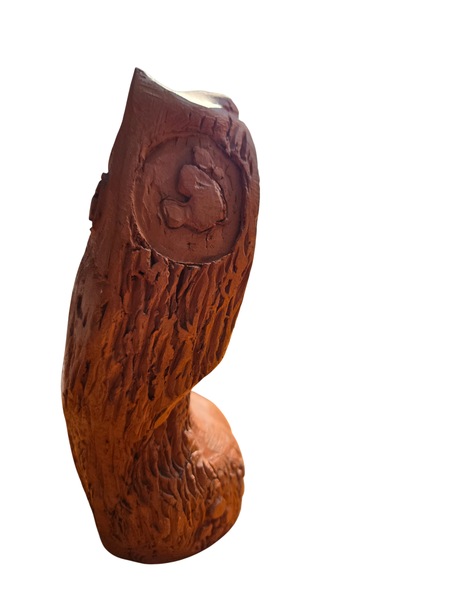 Các tác phẩm điêu khắc gốm thể hiện sự tinh tế trong việc kết hợp chất liệu truyền thống với ngôn ngữ tạo hình hiện đại. Trên bề mặt gốm, nghệ sĩ khắc chạm các ký hiệu, đường nét và bố cục giàu biểu tượng, tạo nên những cấu trúc thị giác vừa mộc mạc vừa sâu sắc. Mỗi tác phẩm mở ra một không gian kể chuyện nhỏ, nơi ký ức, con người và thiên nhiên giao thoa trong hình hài trừu tượng.