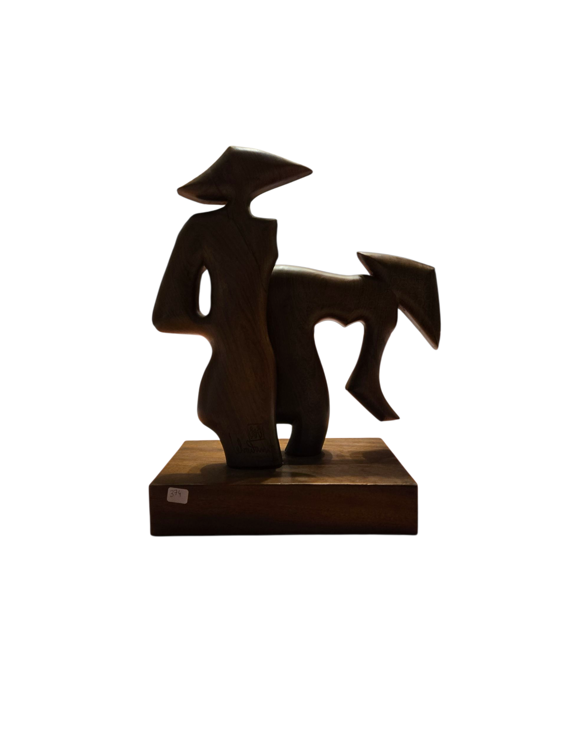 Thể hiện sự hòa quyện giữa hình khối tối giản và cảm xúc nhân văn sâu lắng. Nghệ sĩ khai thác chất gỗ tự nhiên để tạo nên các tư thế, dáng ngồi và chuyển động giàu biểu tượng, trong đó con người được tinh lọc thành những đường nét cô đọng. Qua bề mặt gỗ được xử lý mộc mạc nhưng tinh tế, mỗi tác phẩm gợi mở một trạng thái thiền định, lặng yên nhưng đầy sức biểu đạt..